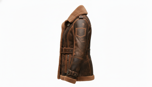 Women's Brown Shearling Leather Aviator Jacket B3 Bomber Real Leather Fur Coat
